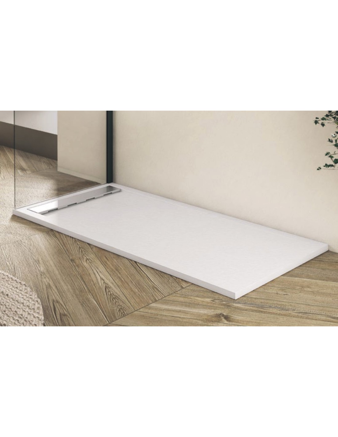 Luz cinzenta bandeja de chuveiro de resina RAL 7035 - Grade linear e borda em 3 lados